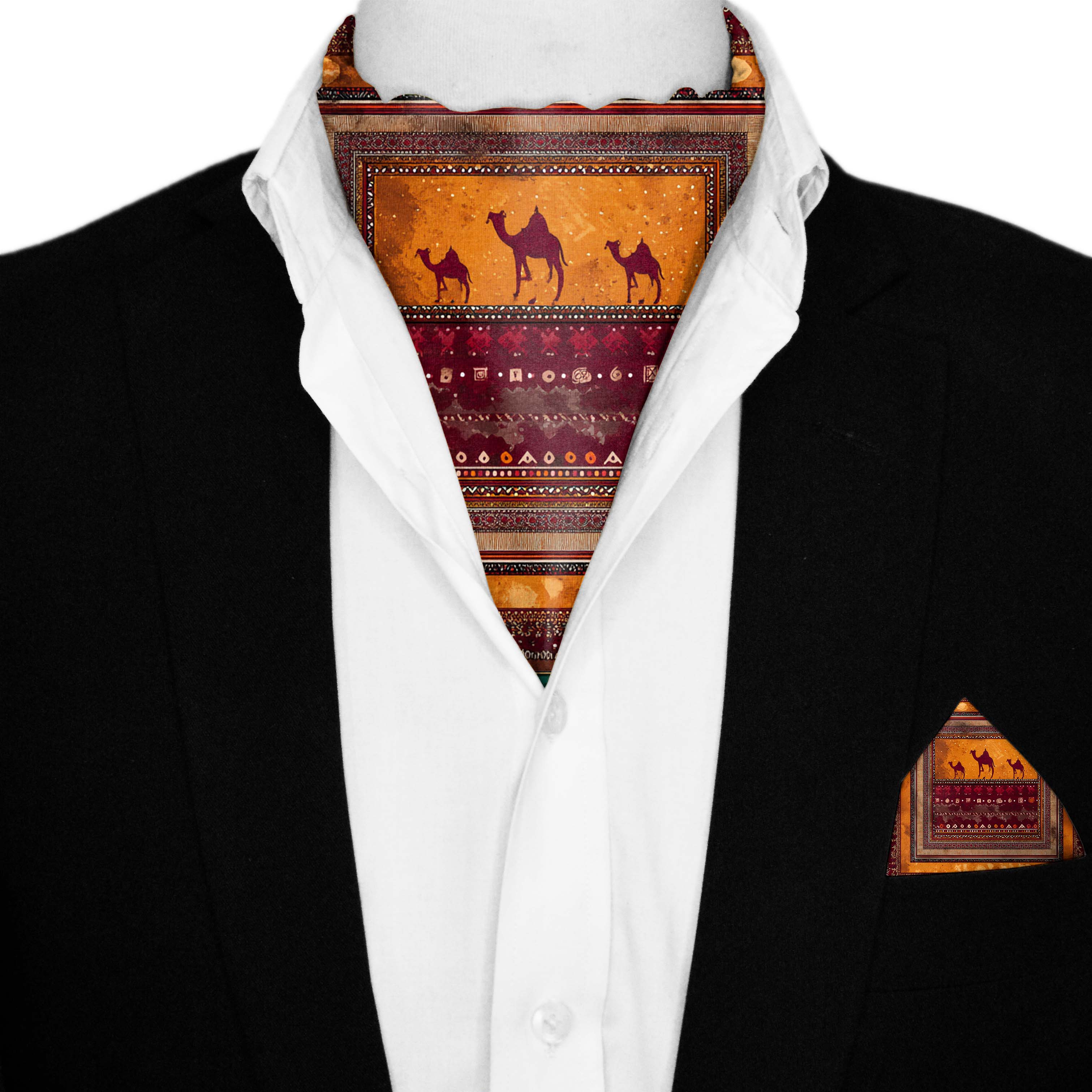 CARAVAN SILK ASCOT AND POCKET SQUARE SET – PREMIUM COLLECTION