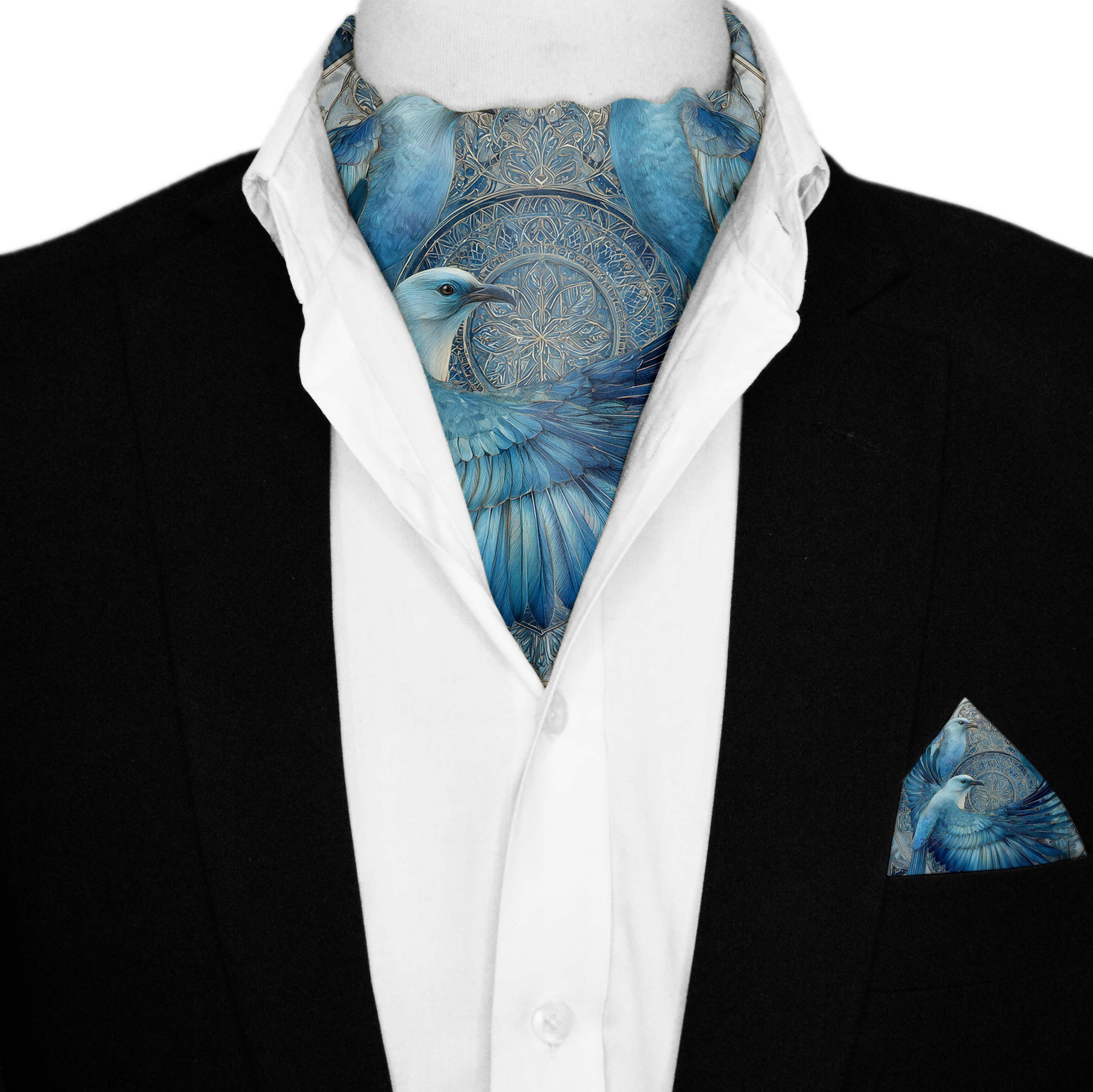 CELESTE SILK ASCOT AND POCKET SQUARE SET – PREMIUM COLLECTION