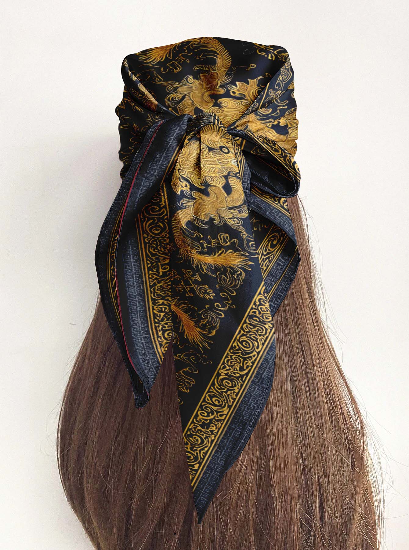 An opulent square design featuring majestic golden dragons encircling an intricate celestial medallion. Inspired by traditional East Asian motifs, this artwork radiates luxury and regal symbolism.
