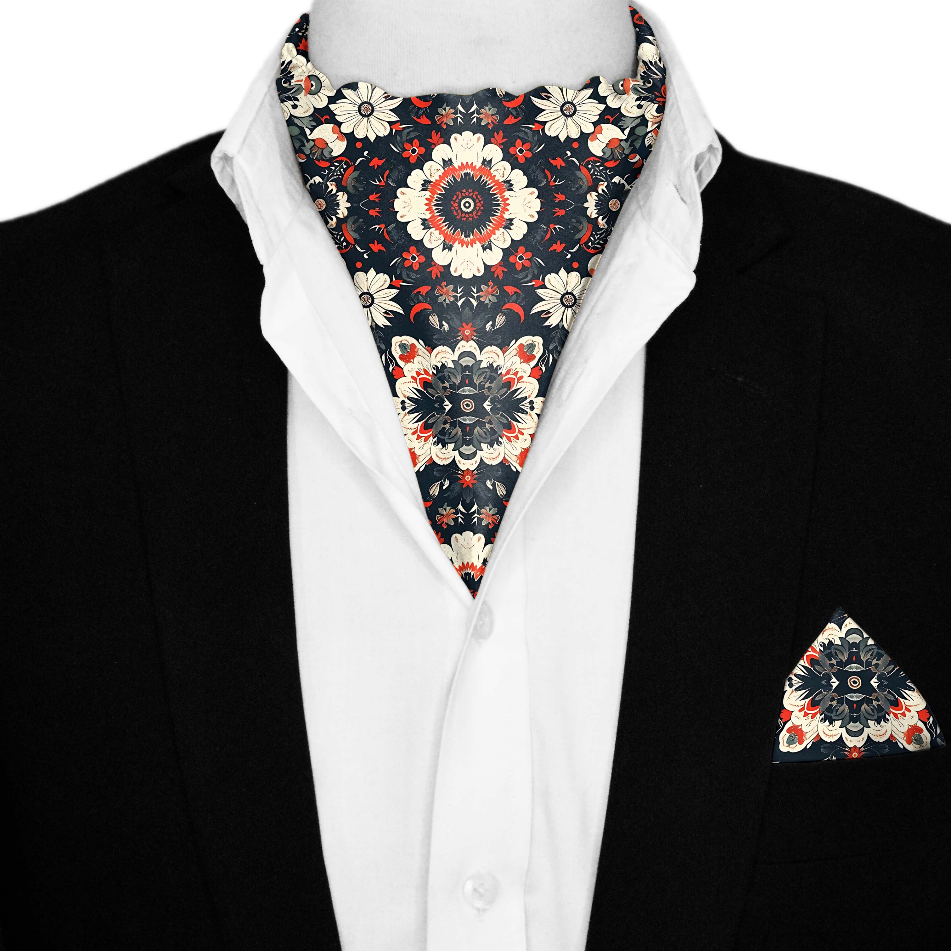 CINTAGE MANDALA SILK ASCOT AND POCKET SQUARE SET – PREMIUM COLLECTION
