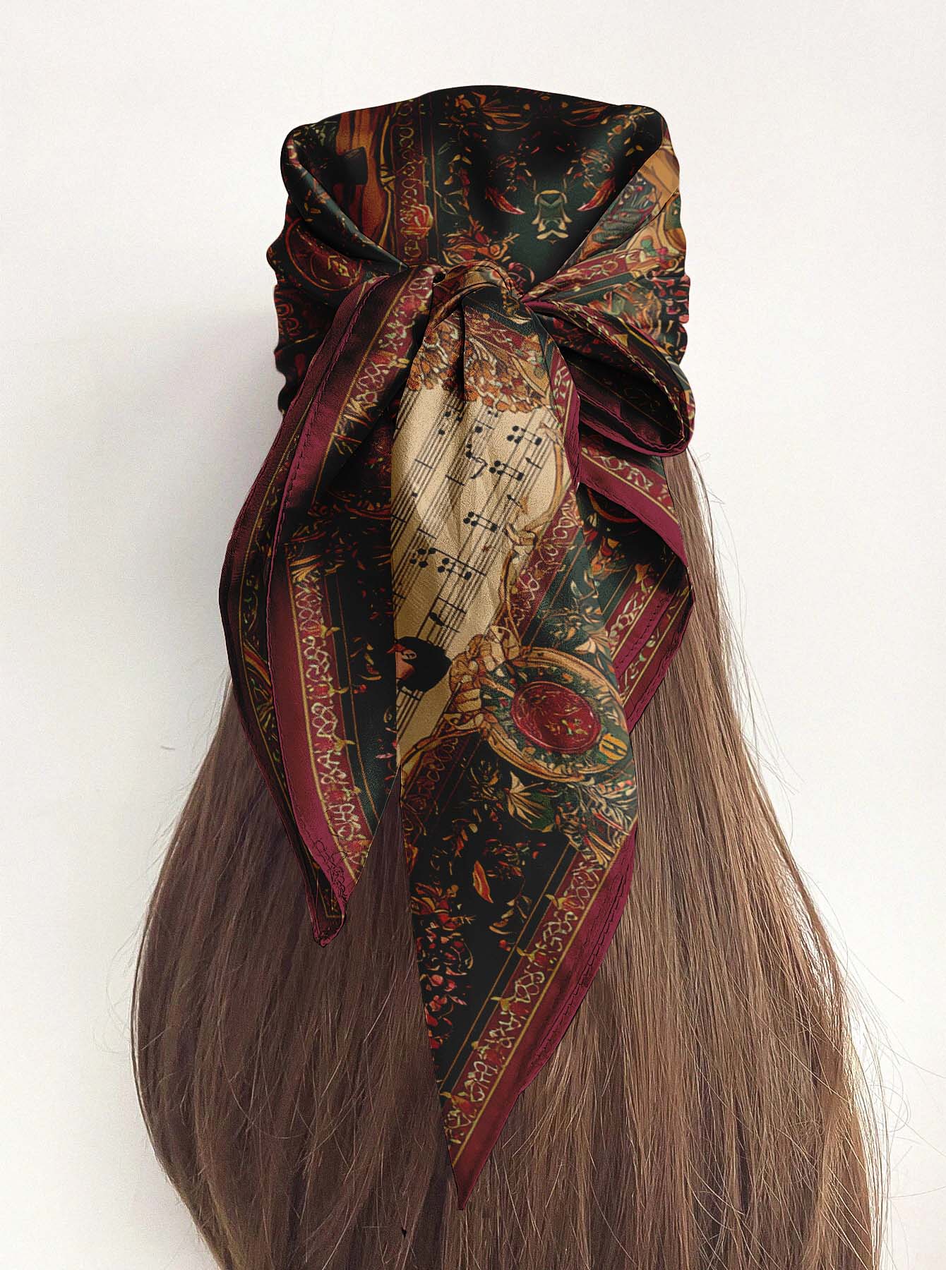 A noble equestrian figure rides through a tapestry of autumnal foliage and classical music notes, framed by ornate baroque motifs. This design evokes a majestic, vintage charm rooted in aristocratic tradition.