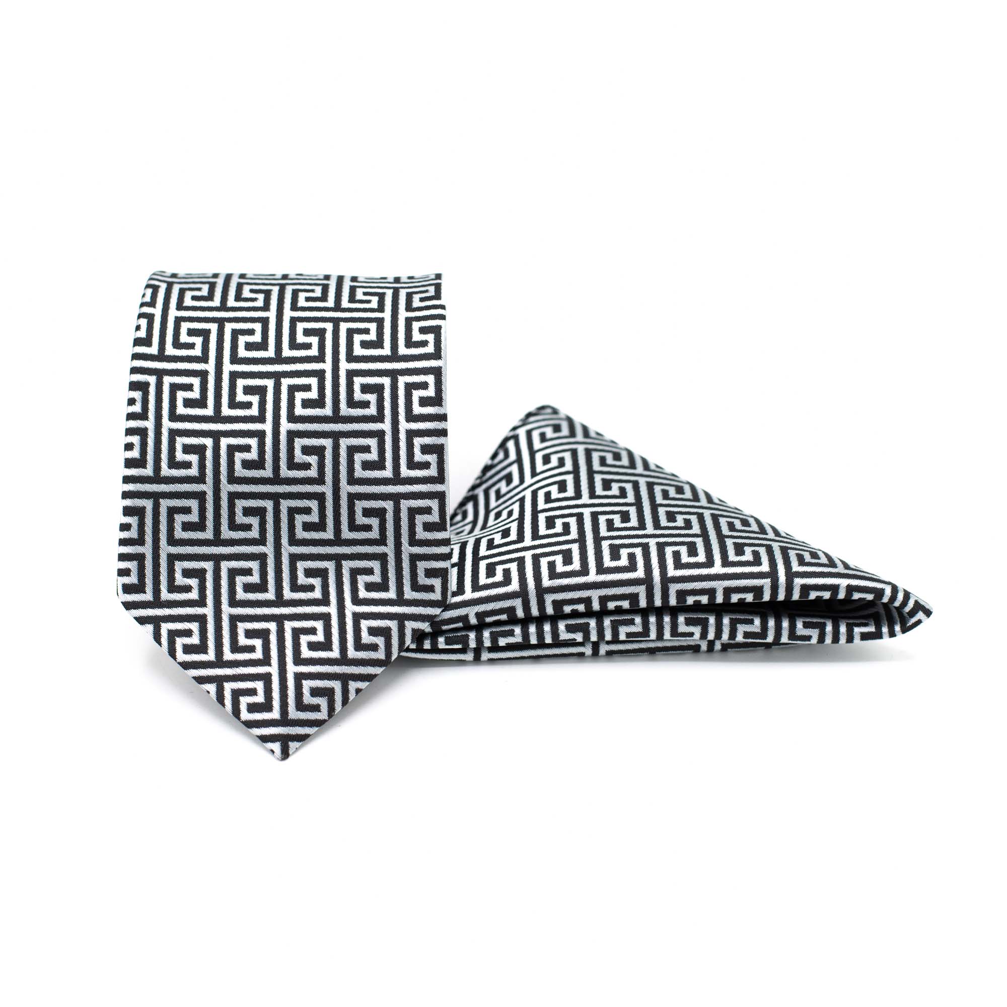 GEOMETRIC PATTERN TIE AND POCKET SQUARE SET