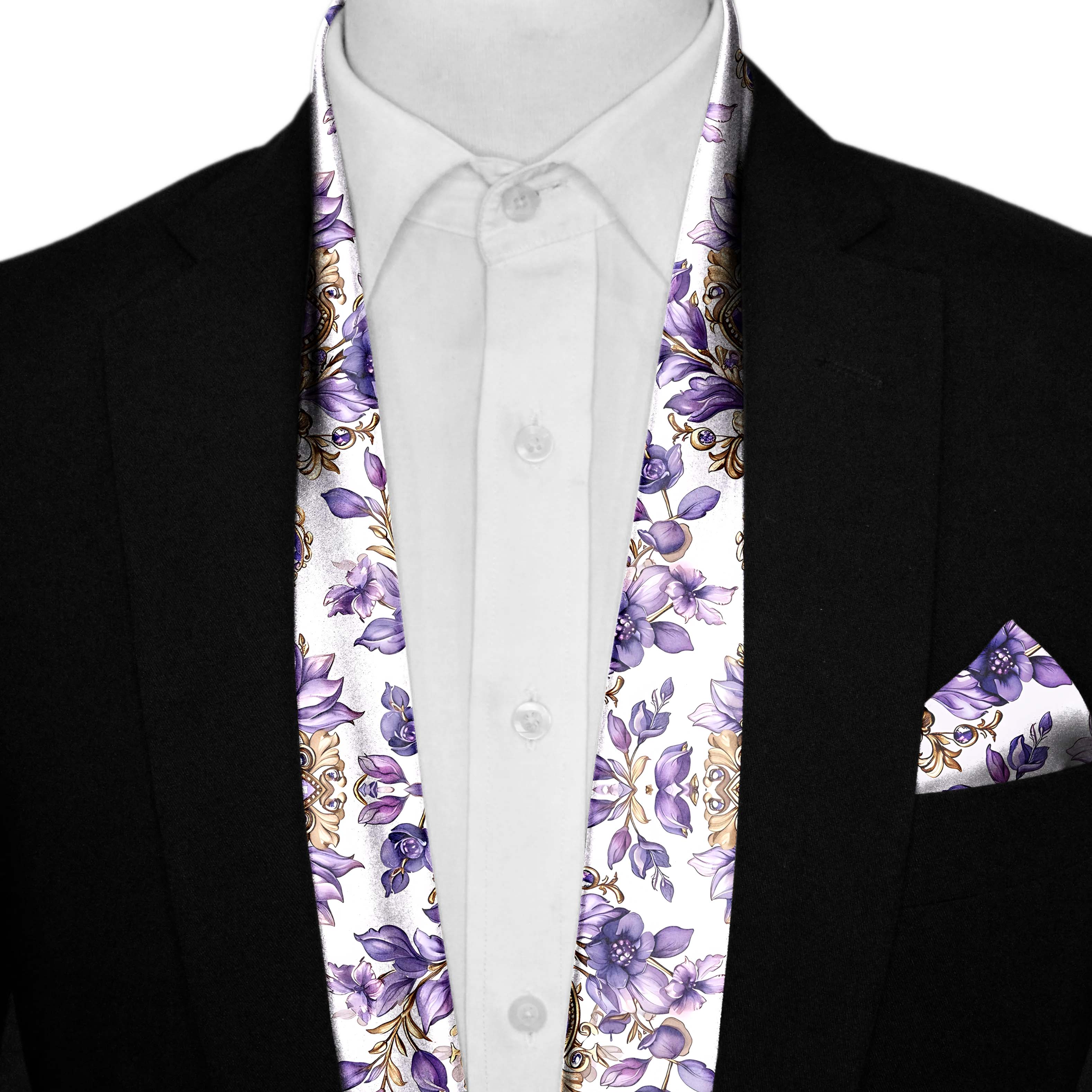 LISIANTHUS FLOWERS MEN SCARF AND POCKET SQUARE SET – PREMIUM COLLECTION