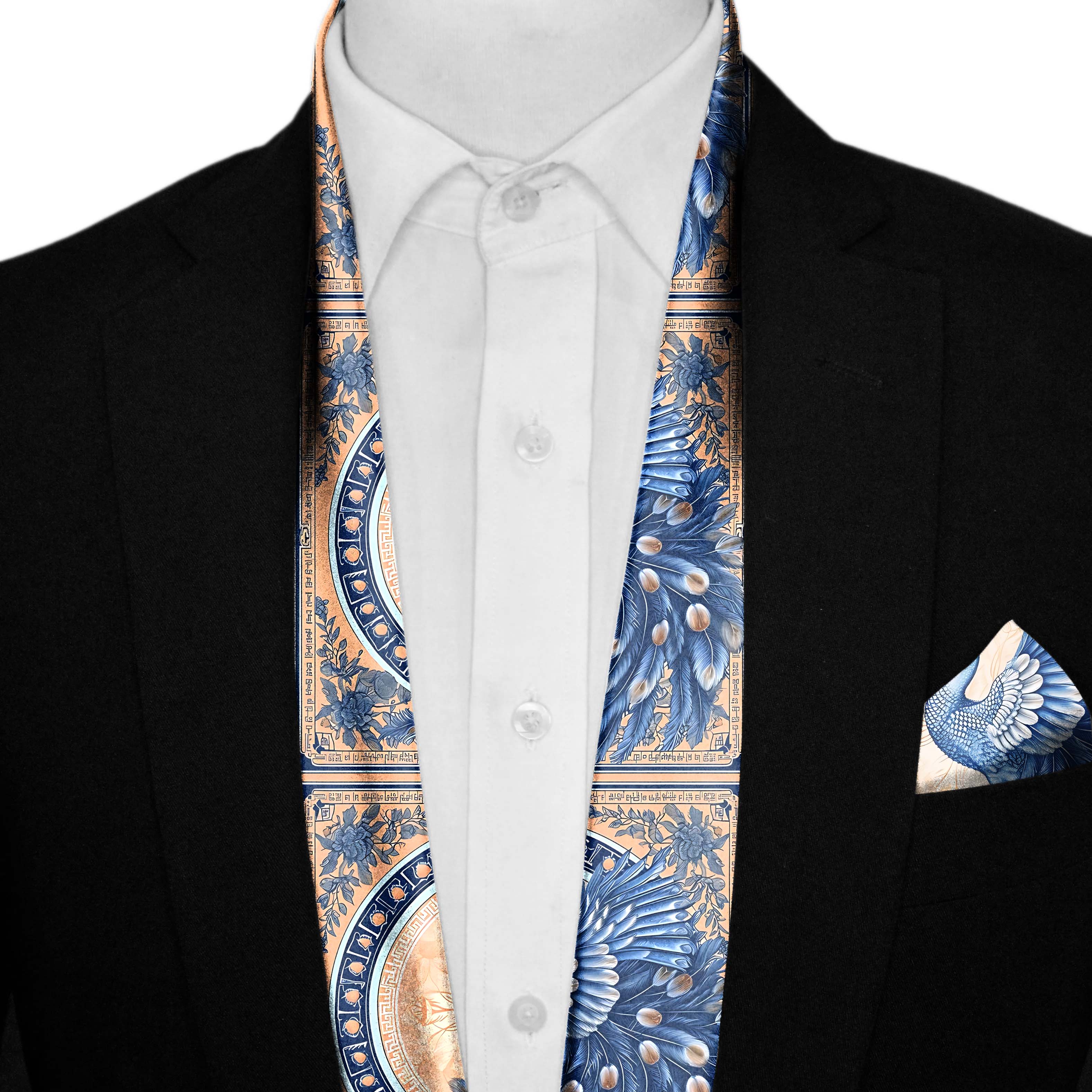 LUXURY CHINOISERIE MEN SCARF AND POCKET SQUARE SET – PREMIUM COLLECTION