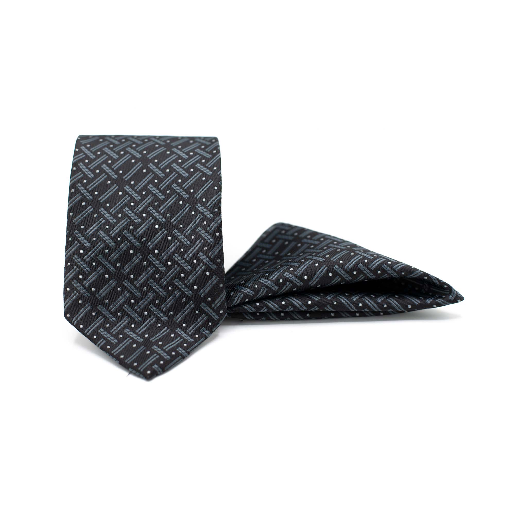 MODERN MESH BLACK TIE AND POCKET SQUARE SET
