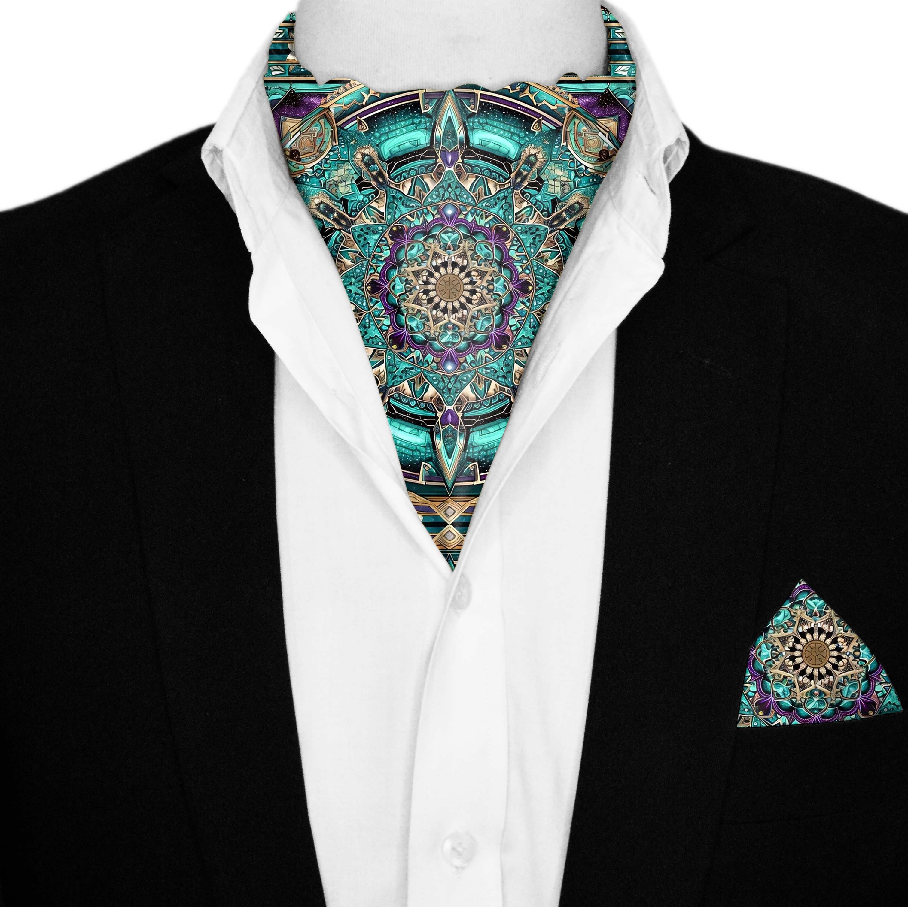 NEON MANDALA SILK ASCOT AND POCKET SQUARE SET – PREMIUM COLLECTION