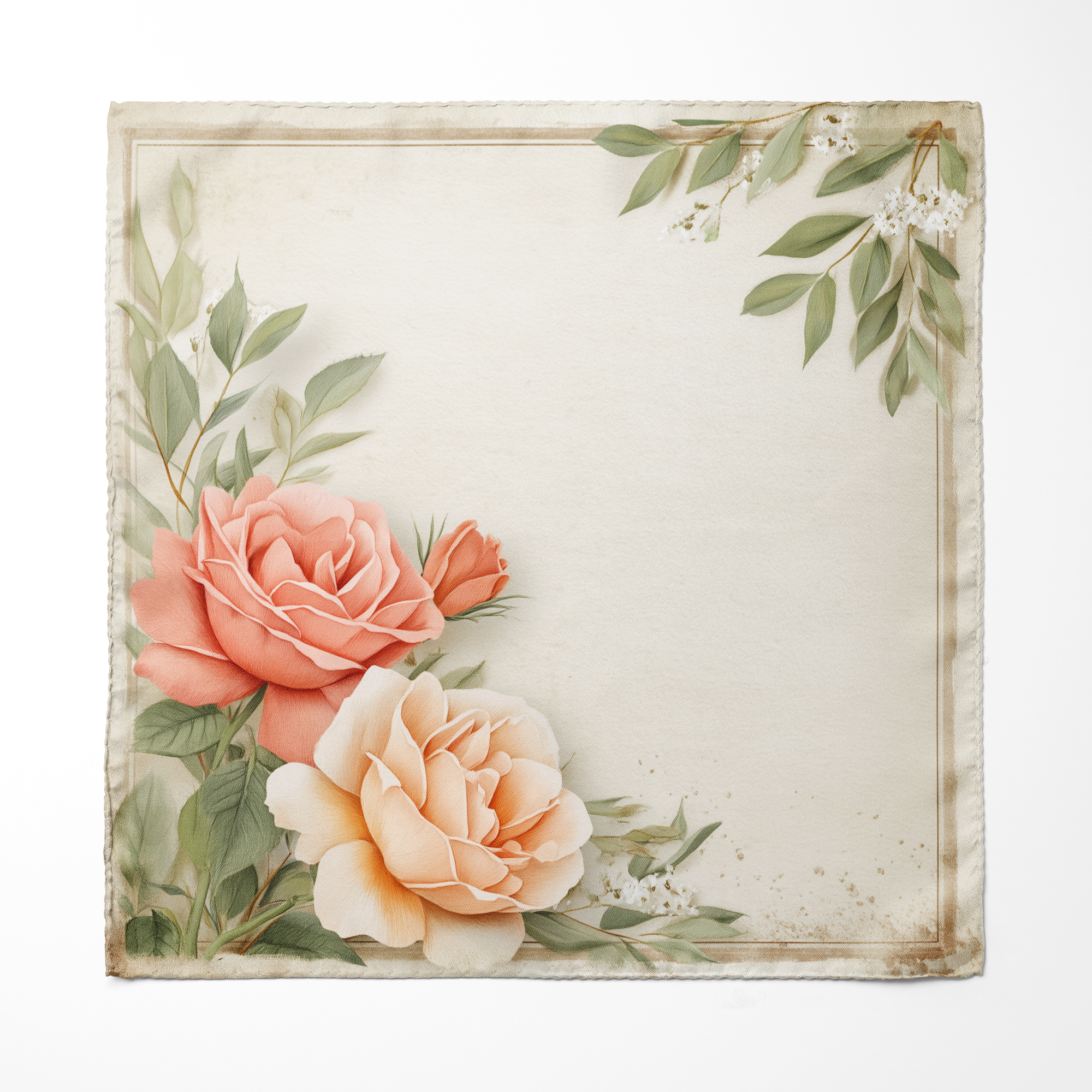 Soft roses bloom at gentle corners,framing memories in pastel serenity. • Item: Pocket Square • Quality: Silk...