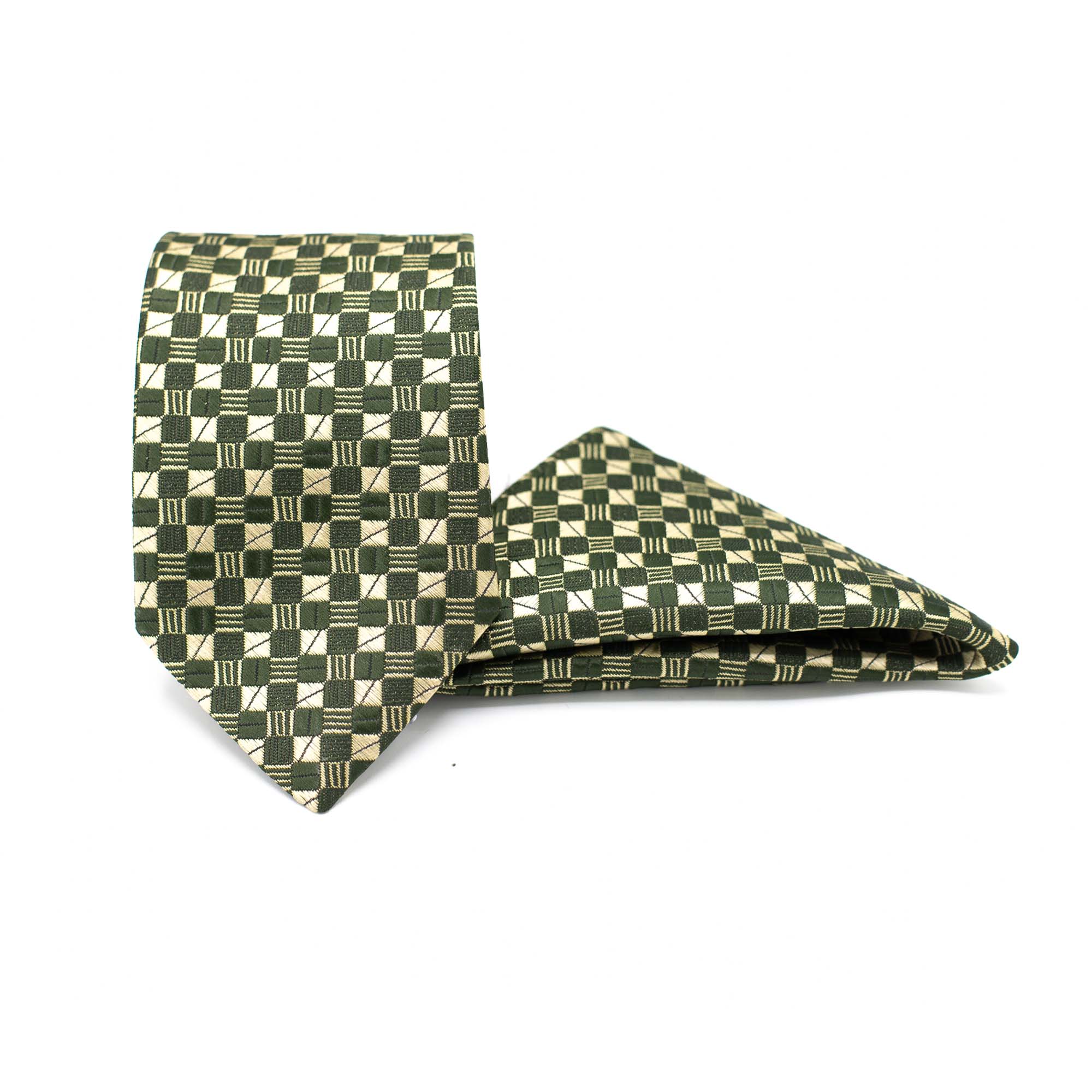 REGAL GREEN CHECKERED TIE AND POCKET SQUARE SET