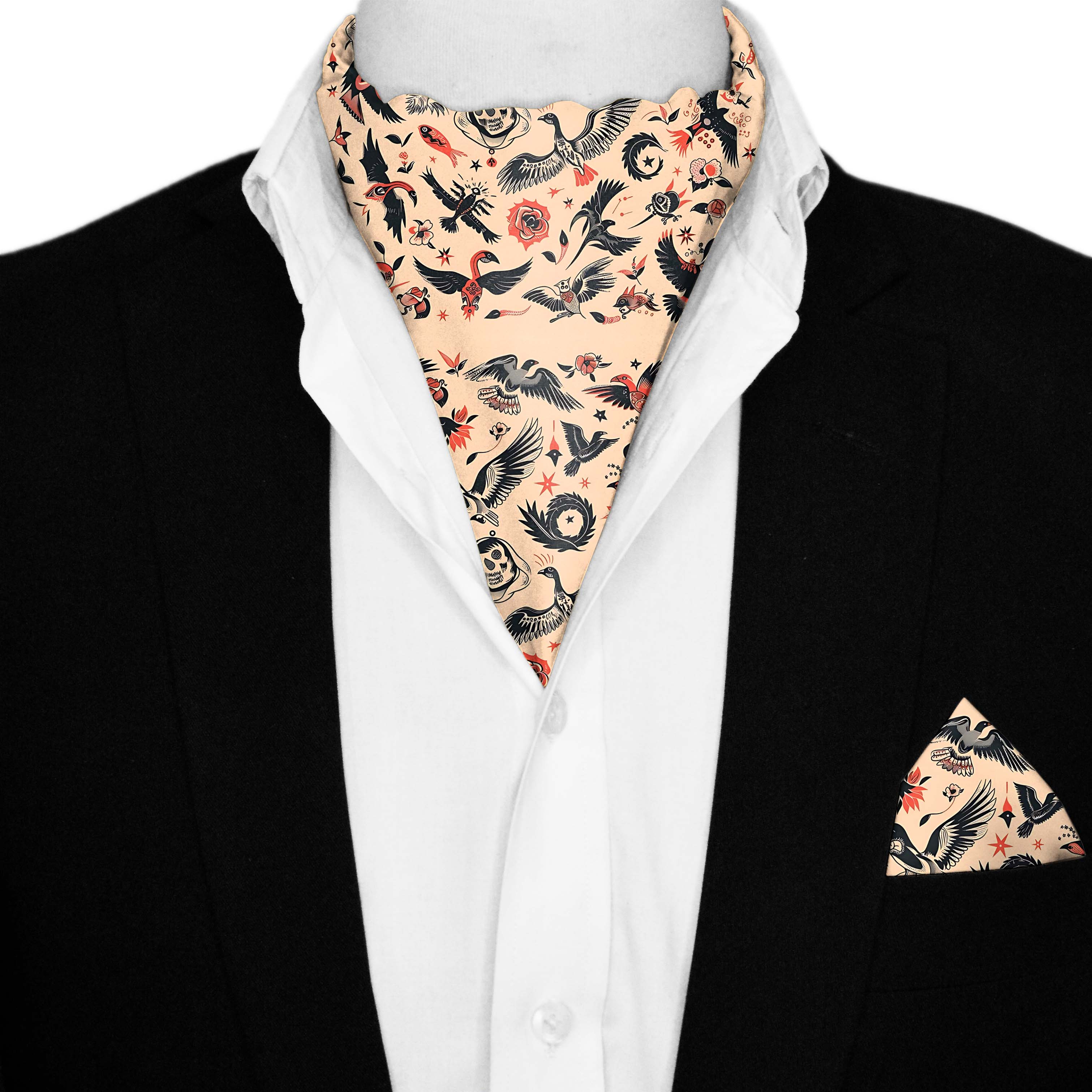 TATTOO FLASH BANDANA SILK ASCOT AND POCKET SQUARE SET – PREMIUM COLLECTION