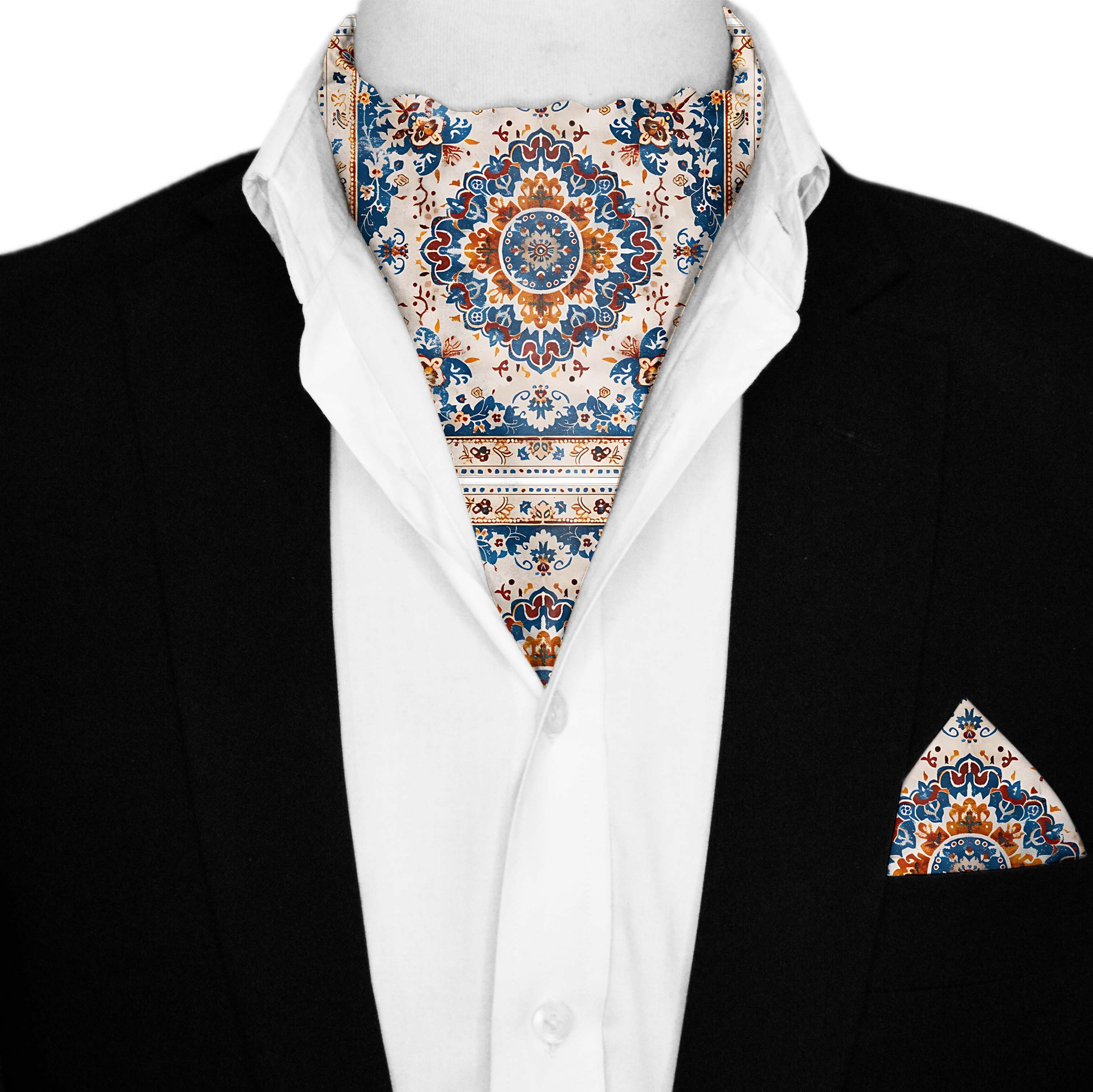 TURKMEN AFGHAN SILK ASCOT AND POCKET SQUARE SET – PREMIUM COLLECTION